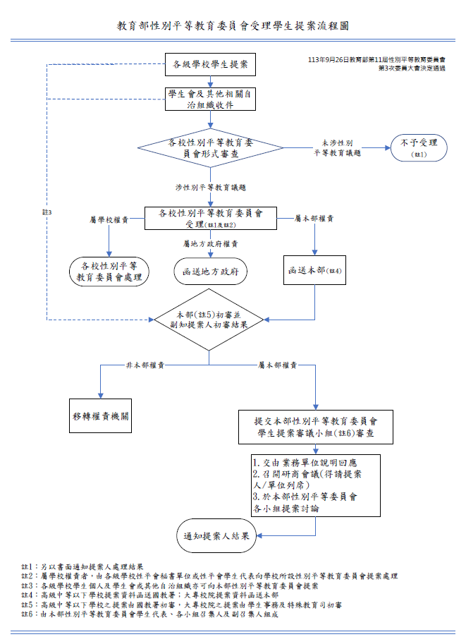 主旨:函轉教育部性別平等教育委員會受理學生提案流程圖及提案單