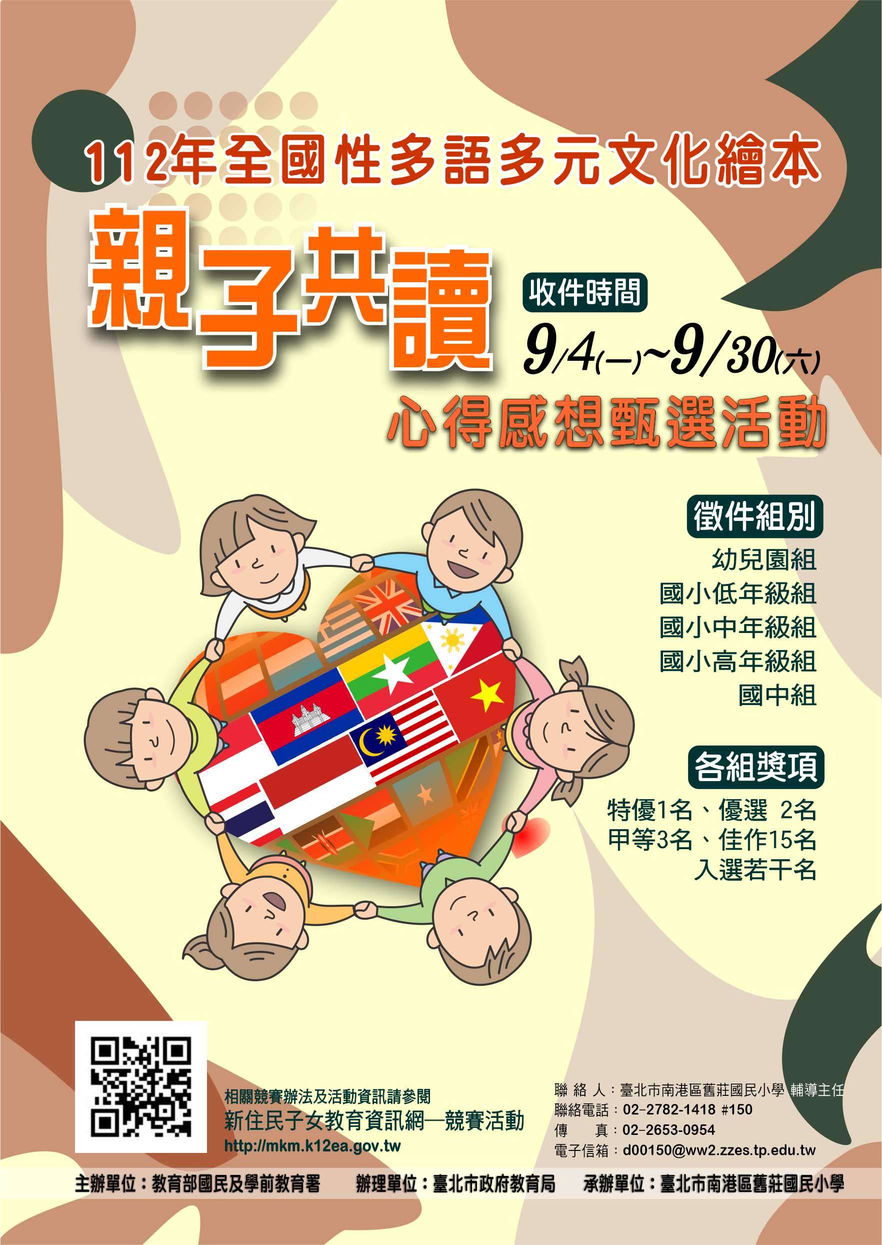 四、112年度全國性多語多元文化繪本親子共讀心得感想甄選活動計畫及電子海報詳見附加檔案。