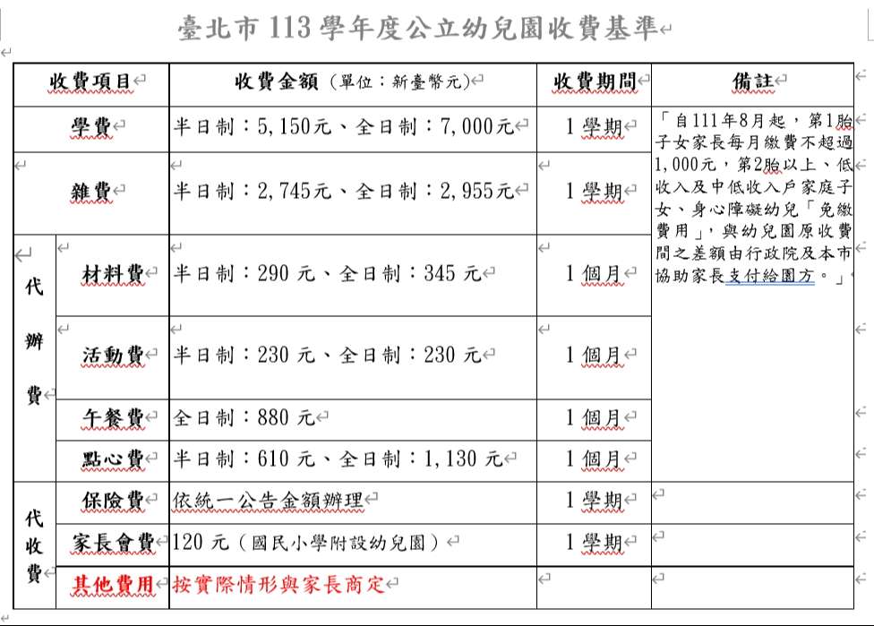 請參閱113-1幼兒園收退費基準。