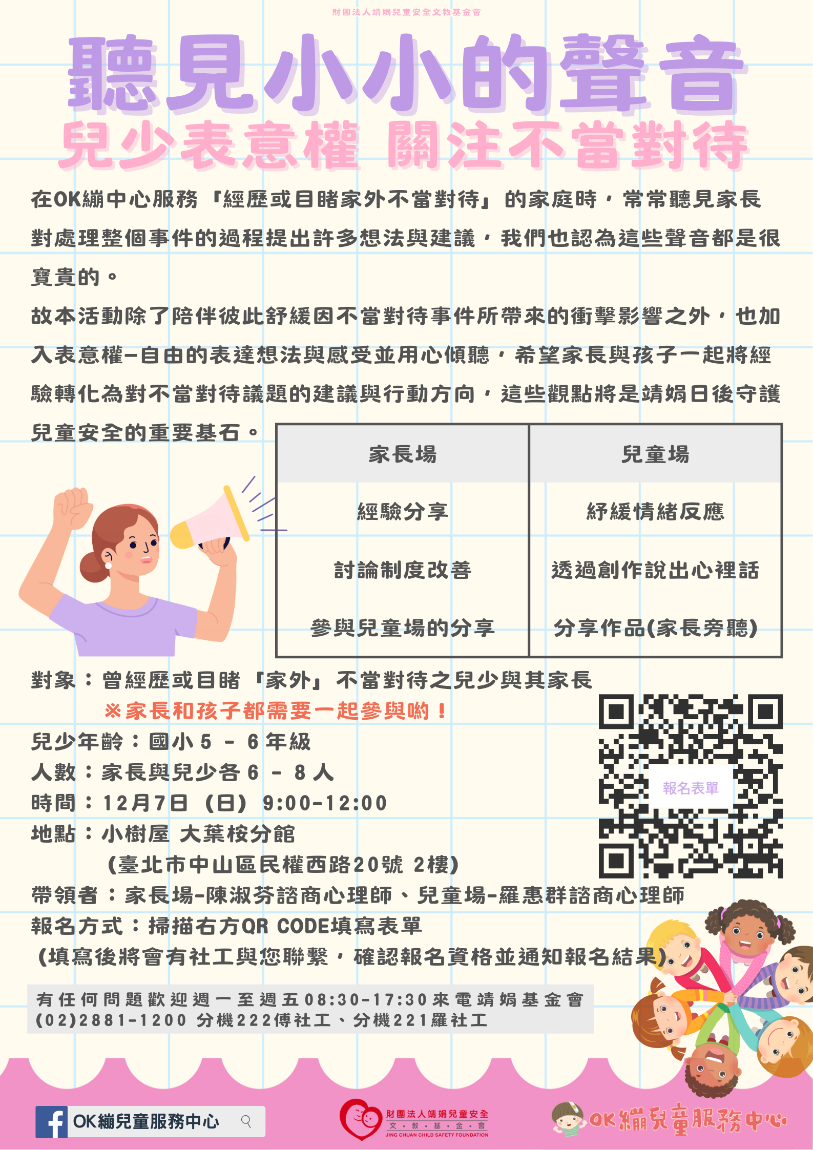 轉知靖娟文教基金會活動「聽見小小的聲音活動海報」,