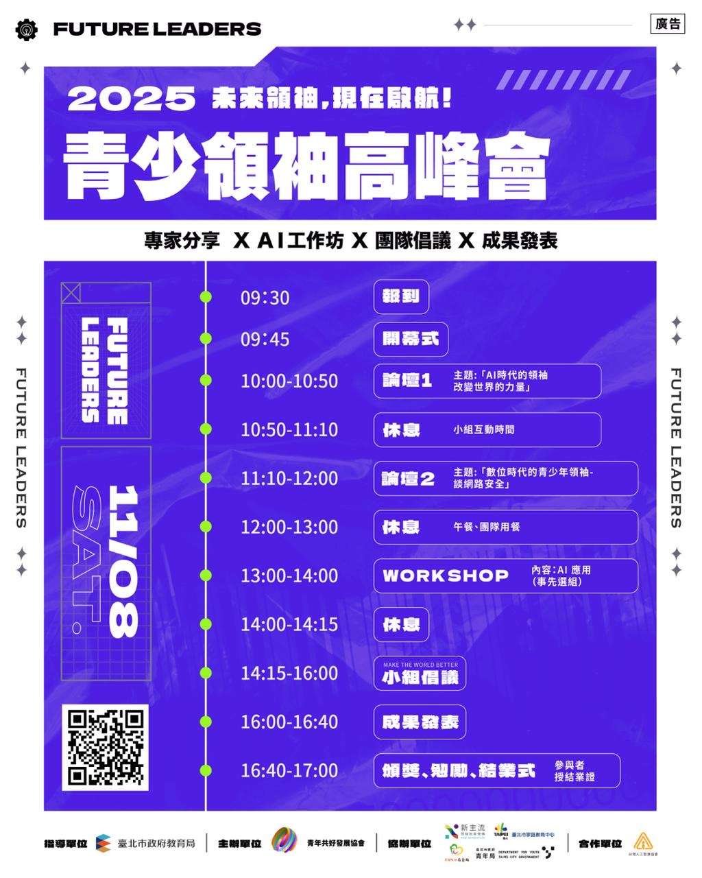 2025少年領袖高峰會實施計畫及活動海報詳見附加檔案。