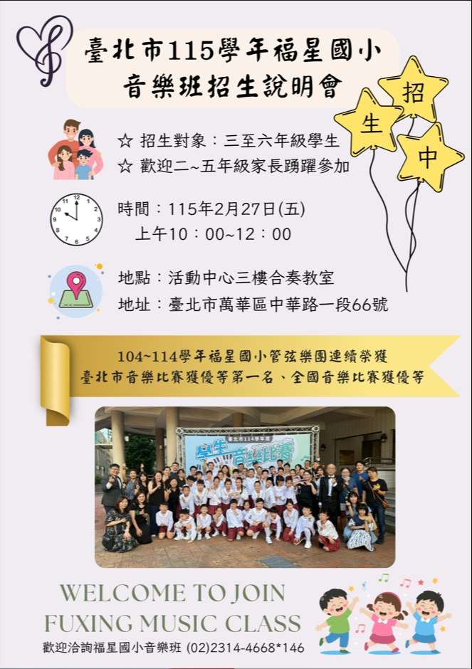 附件為「福星國小115學年度藝術才能音樂班招生說明會」海報,