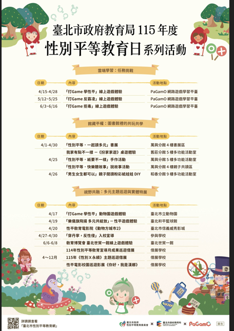 (六)114年性别平等教育宣導月成果巡迴借展、115年《性別 X永續》主題巡迴借展,請依本局115年3月27北市教學 字第11530509172號函辦理。